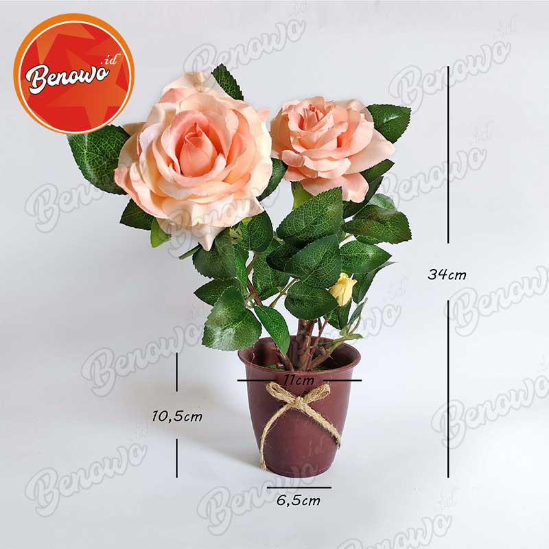 Bunga Mawar Plastik Artificial Cantik Dengan Pot Unik Utk Sovenir
